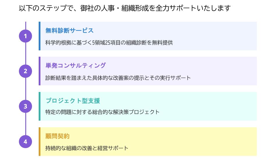 豊かな組織づくりを一歩ずつ、一緒に成長しながら支援してまいります